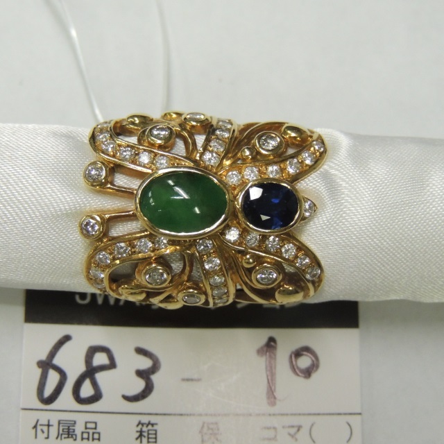 リング サファイア ダイヤ ヒスイ K8 16.40g 石目:S0.908 H1.618 D1.02