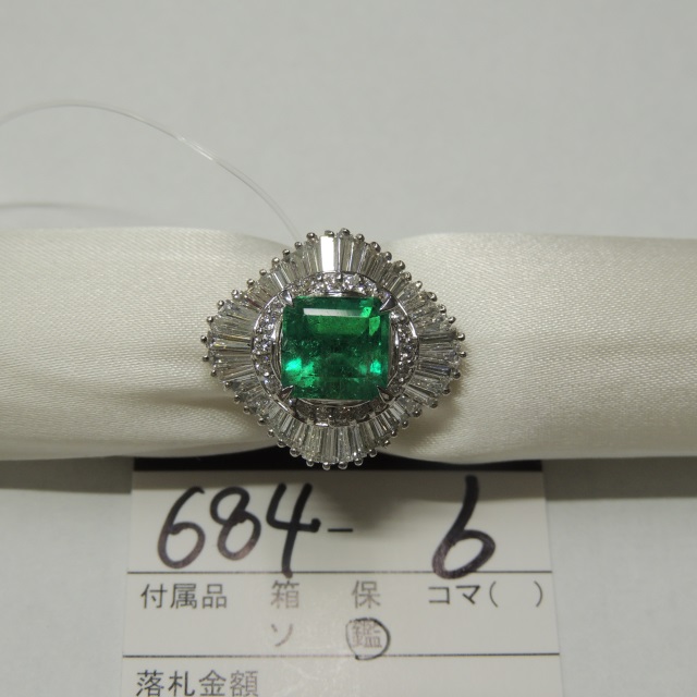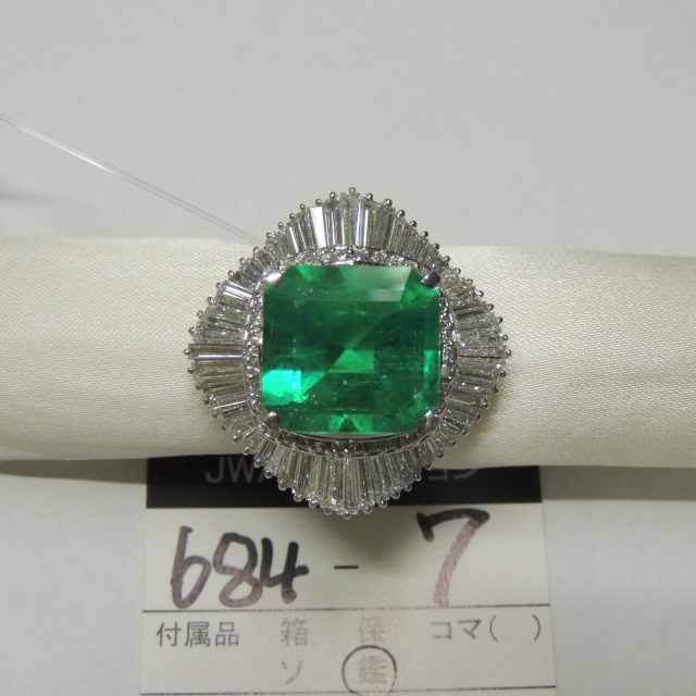 リング エメラルド ダイヤ Pt900 12.00g 鑑 石目:3.00 D2.00