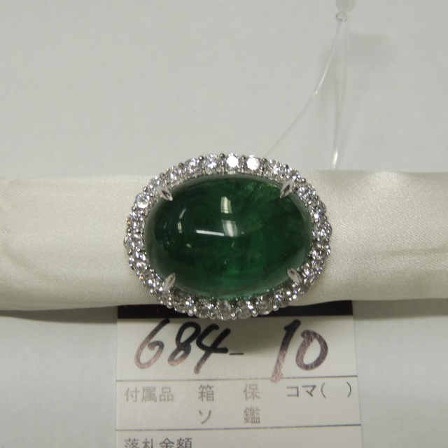 リング エメラルド カボション ダイヤ Pt900 24.10g 石目:44.27 D2.53