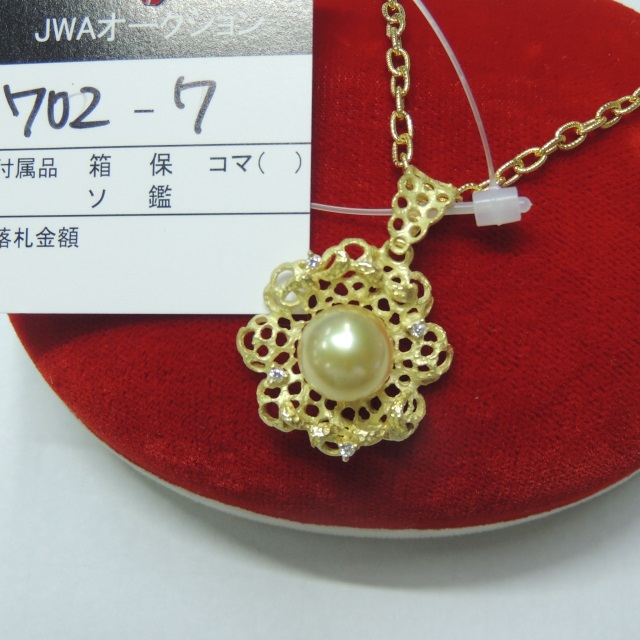 ペン・ネック 花珠真珠 ダイヤ 10.6mm ゴールドリップ K18/K14 14.90g 鑑 石目:D0.07