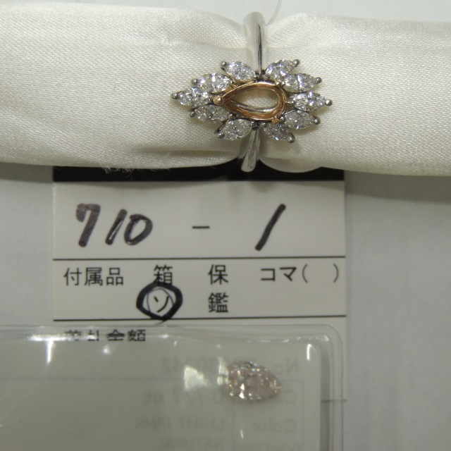 リング ピンクダイヤ ライトピンク-SI2-MB 中石外した状態 ペアシェイプ Pt900/K18 7.25g 中ソ 石目:PSD0.72 FD0.90