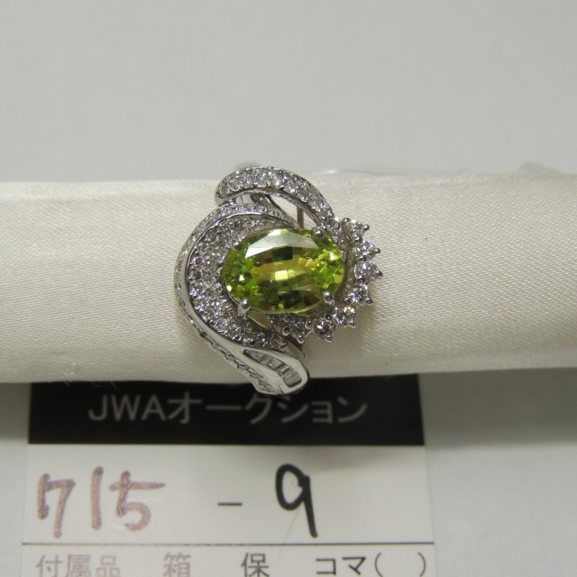 リング ペリドット ダイヤ K18WG 8.80g 石目:P2.47 D0.70