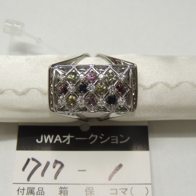 リング 色石 ダイヤ K18WG 10.40g 鑑 石目:0.76 D0.22