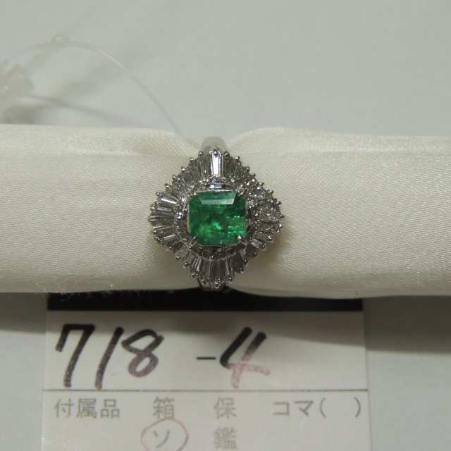 リング エメラルド ダイヤ Pt900 6.80g GRJソ 石目:E1.23 D1.15