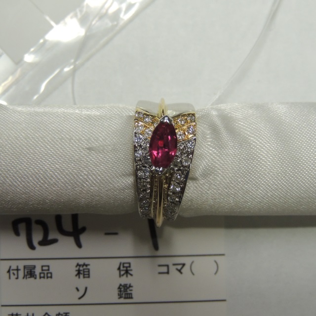 リング ルビー ダイヤ K18/Pt900 11.30g GRJソ 石目:R0.73 FD0.45
