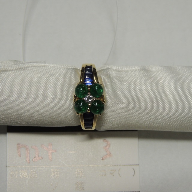リング エメラルド サファイヤ ダイヤ K18 4.50g 石目:D0.07 S0.74