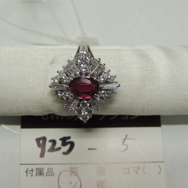 ペントップ ルビー ダイヤ Pt900 3.30g GRJソ 石目:1.06 FD0.50