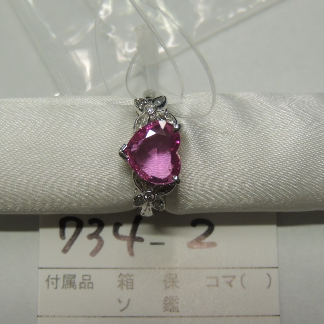 リング ハートモチーフ ピンクS0.37 PT900 8.40g GRJソ 石目:FD0.12