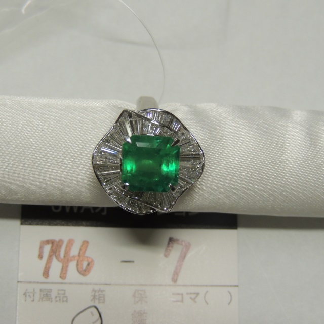 リング エメラルド ダイヤ メレ1P取れ Pt900 11.70g 中ソ 石目:3.44 1.34