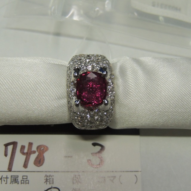 リング ルビー ダイヤ K18WG 10.30g 中ソ 石目:R2.04 2.05