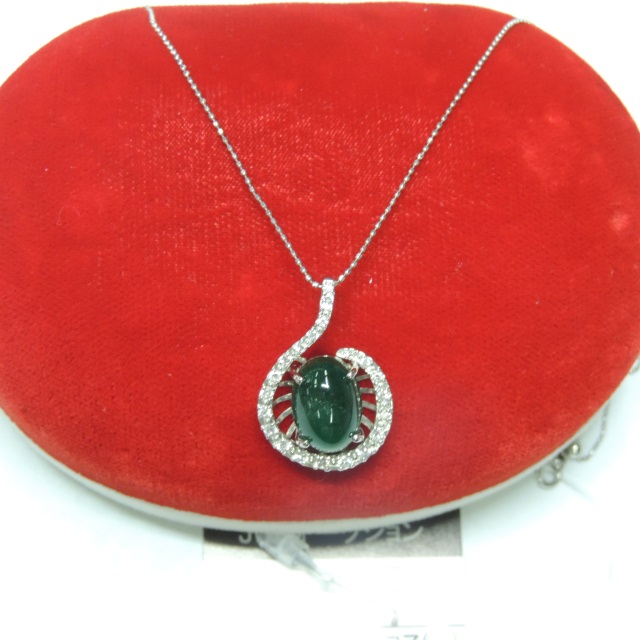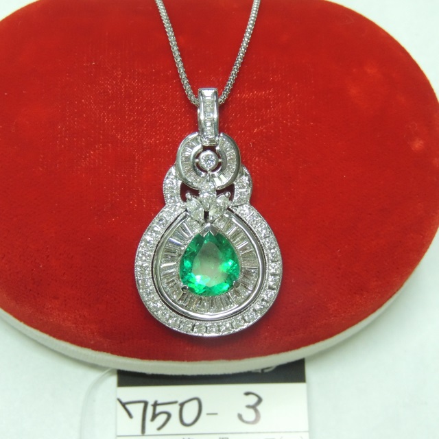 ペン・ネック エメラルド ダイヤ Pt900/Pt850 12.35g 石目:6.48 1.10