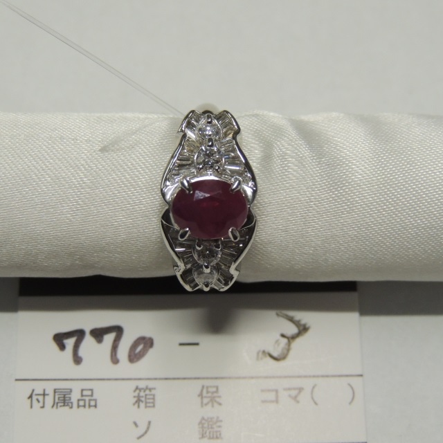 リング ルビー非加熱 Pt900 9.20g 鑑 石目:3.04 0.91
