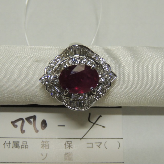 リング ルビー Pt900 15.10g 石目:3.75 1.974