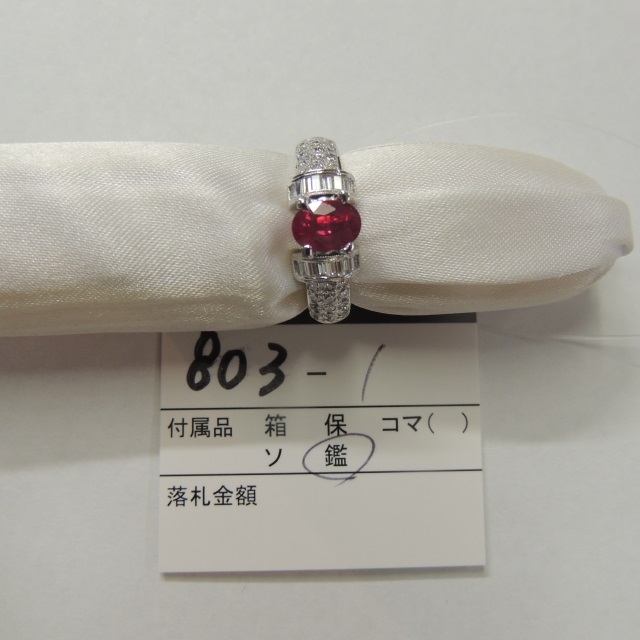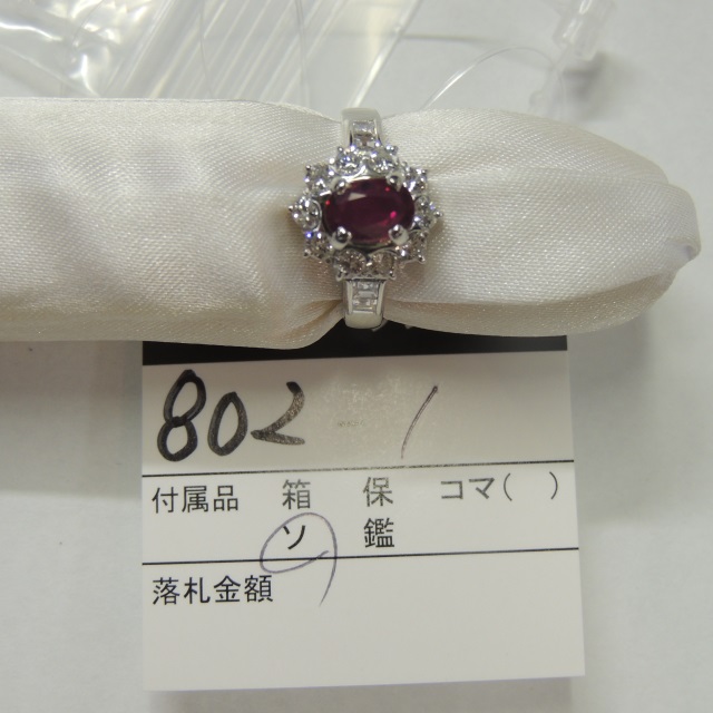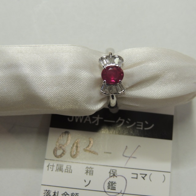 リング ビルマ産ルビー ダイヤ Pt900 5.80g 鑑 石目:2.70 D0.56