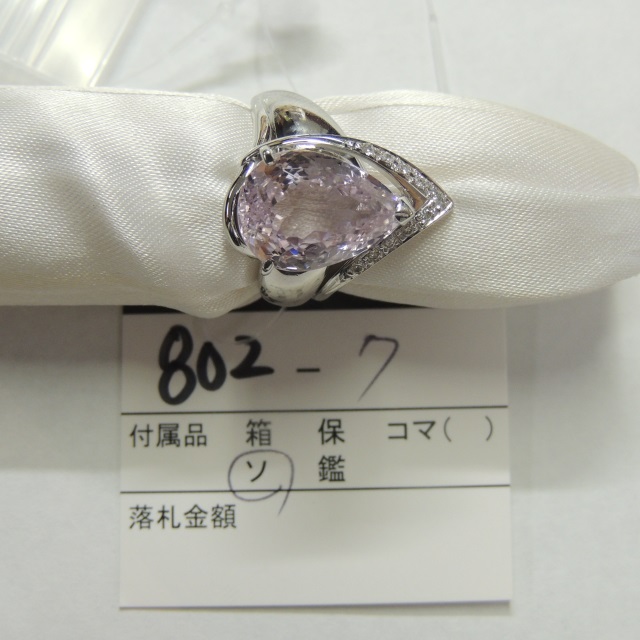 リング クンツァイト ダイヤ Pt900 13.80g ソ 石目:7.92 D0.10