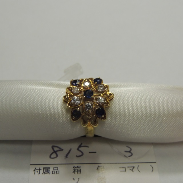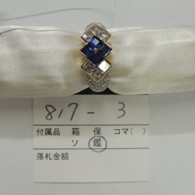 リング サファイア ダイヤ K18/Pt900 9.00g 鑑 石目:S0.92 FD0.94 FD0.49