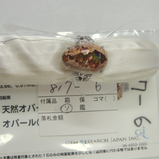 リング オパール ダイヤ K18WG 9.00g GRJソ 石目:OP13.66 FD0.67
