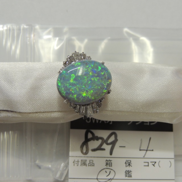 リング ブラックオパール ダイヤ Pt900 10.30g GRJソ 石目:7.59 0.96