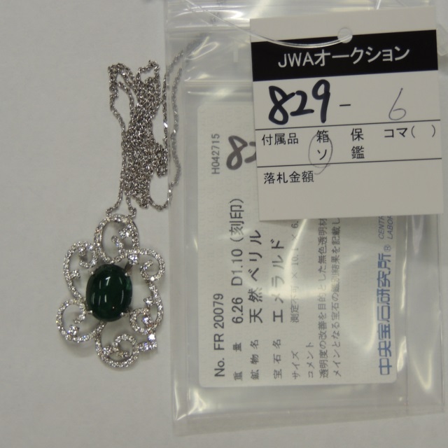 ペン・ネック エメラルドカボション ダイヤ Pt900/Pt850 11.80g 中ソ 石目:6.26 1.10