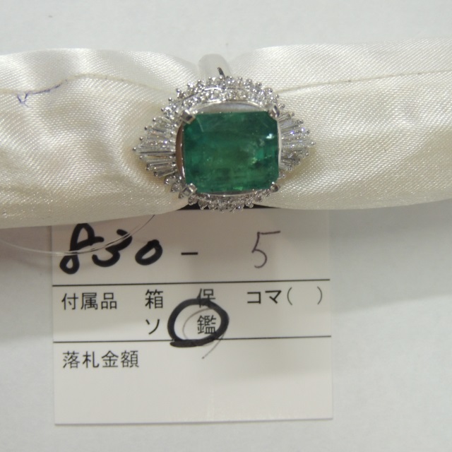 リング エメラルド ダイヤ Pt900 13.00g 鑑 石目:5.24 0.87