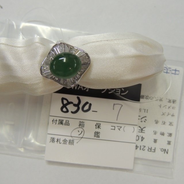 リング ヒスイ ダイヤ Pt900 9.10g 中ソ 石目:4.007 1.30