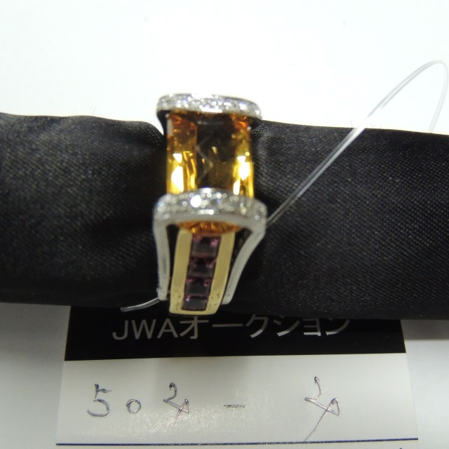 リング シトリン ダイヤ K18/Pt900 9.50g 石目:C5.48 T1.23 D0.29