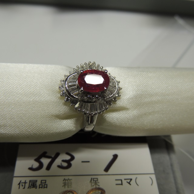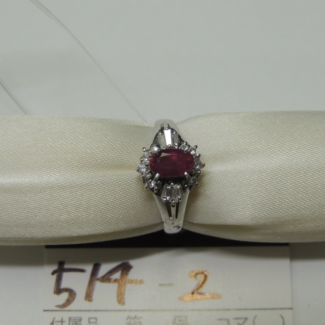 リング ルビー ダイヤ Pt900 4.70g 鑑 石目:0.88 D0.21