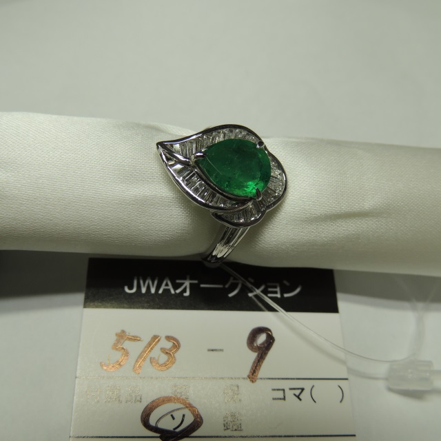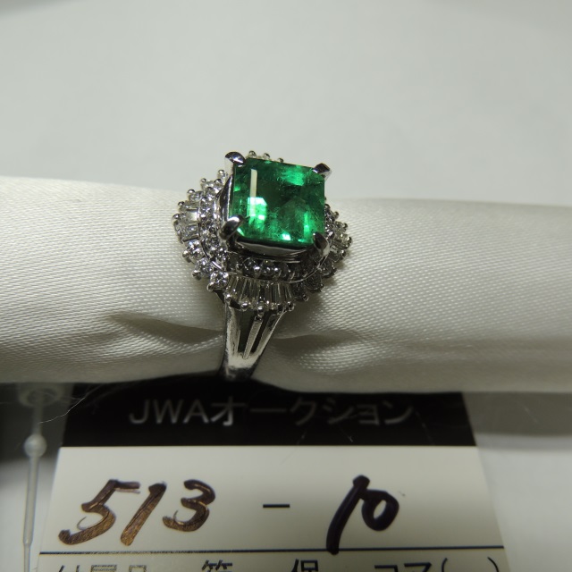 リング エメラルド ダイヤ Pt900 8.60g 中鑑 中ソ 石目:E1.617 FD0.70