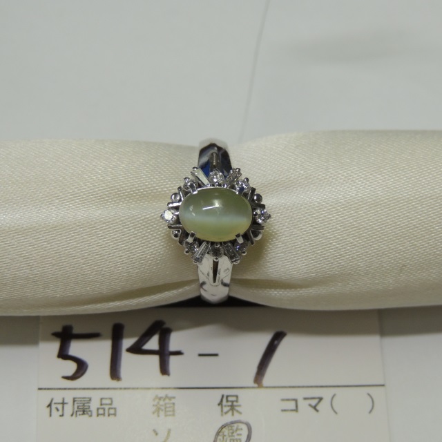 リング キャッツアイ ダイヤ Pt900 5.60g 鑑 石目:C1.36 0.20