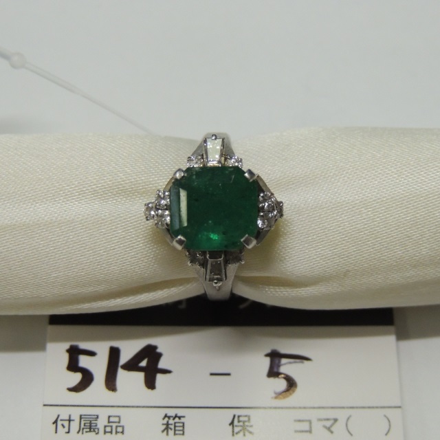 リング エメラルド ダイヤ Pt900 5.10g 中ソ 石目:E2.14 FD0.40