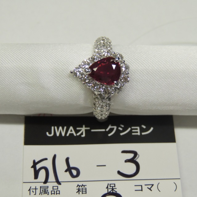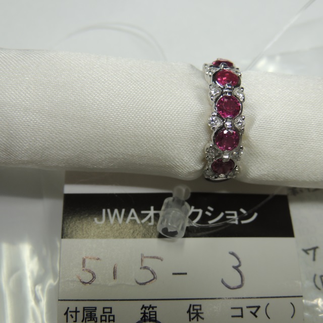 リング ルビー タイ ダイヤ Pt900 6.00g 鑑 石目:3.28 0.6