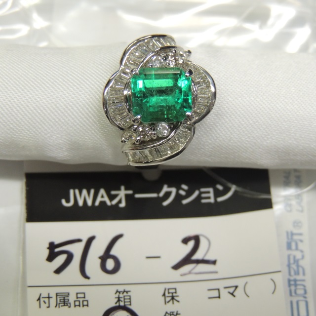 リング エメラルド ダイヤ Pt900 10.30g 中ソ 石目:2.345 1.21