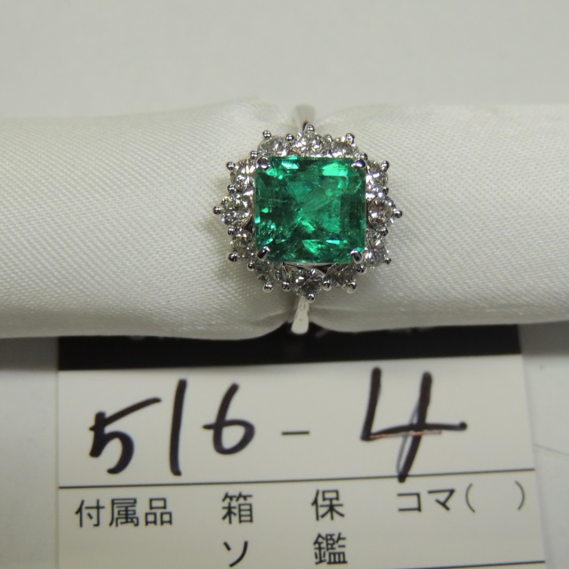 リング エメラルド ダイヤ Pt900 6.25g 石目:2.53 1.15