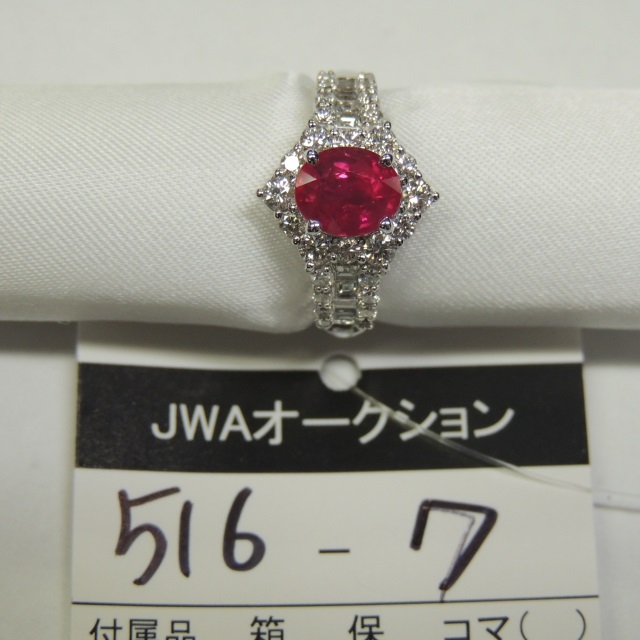 リング ルビー 非加熱ピジョンブラッド ダイヤ Pt900 7.85g 鑑 石目:2.01 1.43