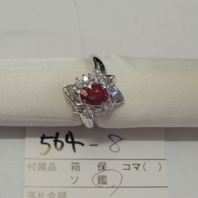 リング ルビー Pt900 7.70g 中ソ 石目:1.218 D0.55