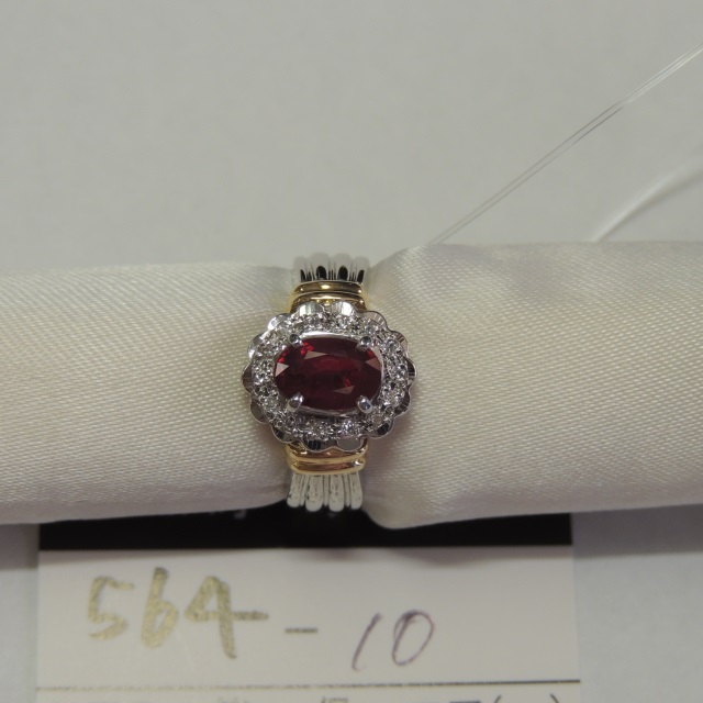 リング 非加熱ピジョンブラッド ルビー Pt900/K18 5.30g GRSノーヒート鑑 石目:1.00 D0.08