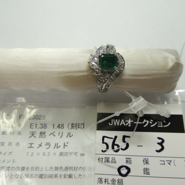 リング エメラルド ダイヤ Pt900 10.40g 中ソ 石目:E1.38 D1.48