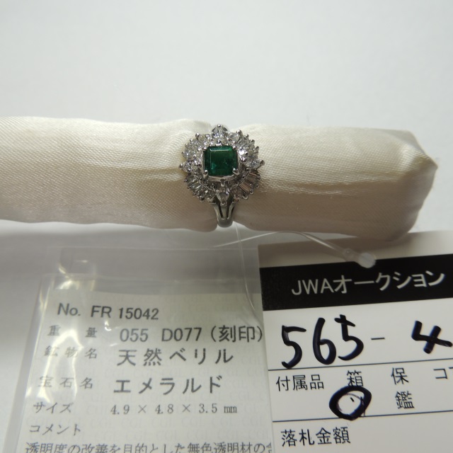 リング エメラルド ダイヤ Pt900 14.00g GRJソ 石目:E1.01 D1.97