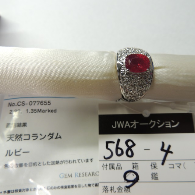 リング ルビー ダイヤ Pt900 12.00g GRJソ 石目:R2.22 D1.35