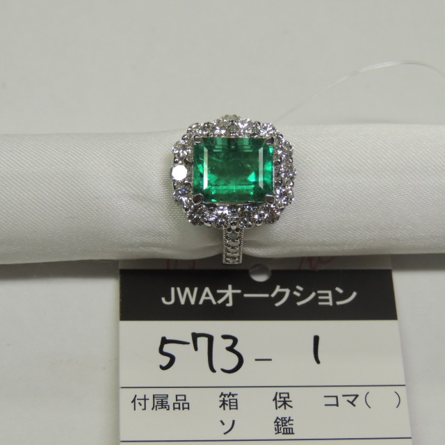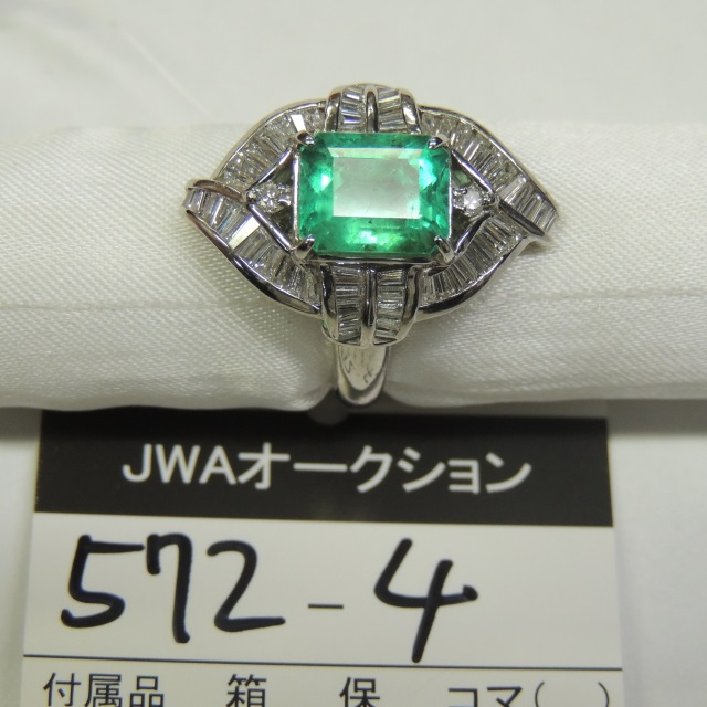 リング エメラルド ダイヤ Pt900 15.00g 石目:4.19 1.38