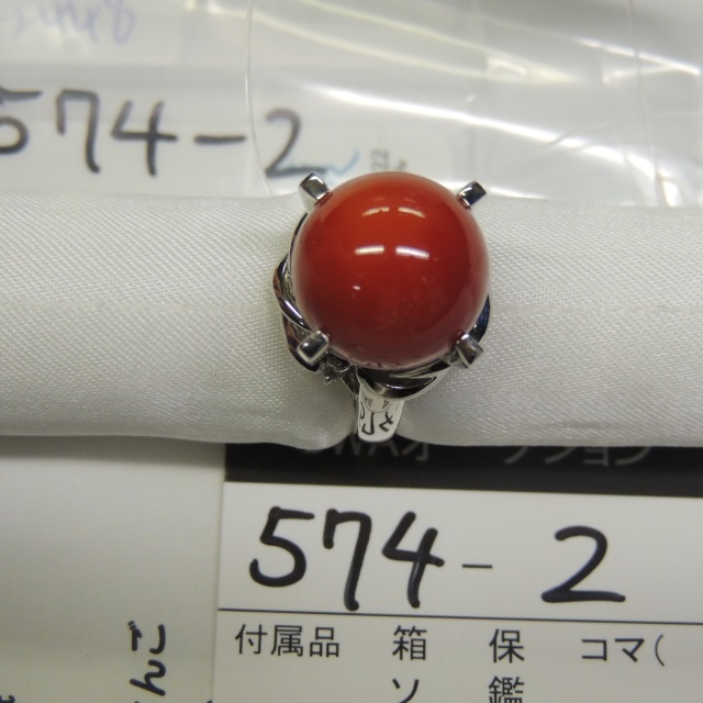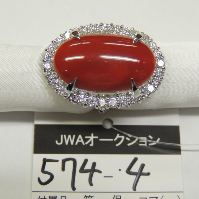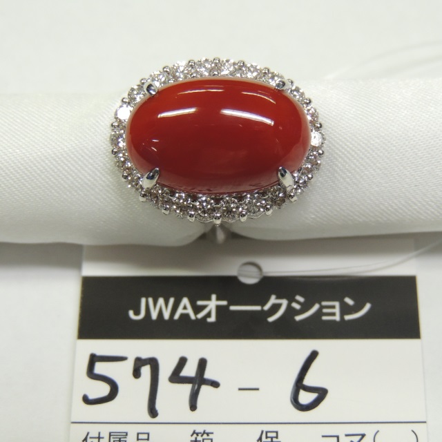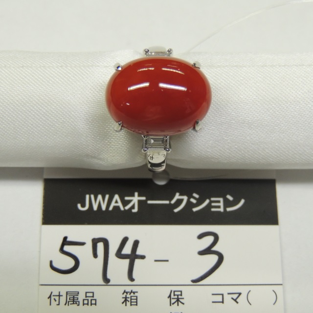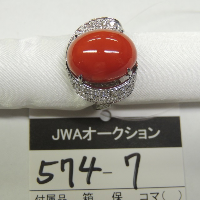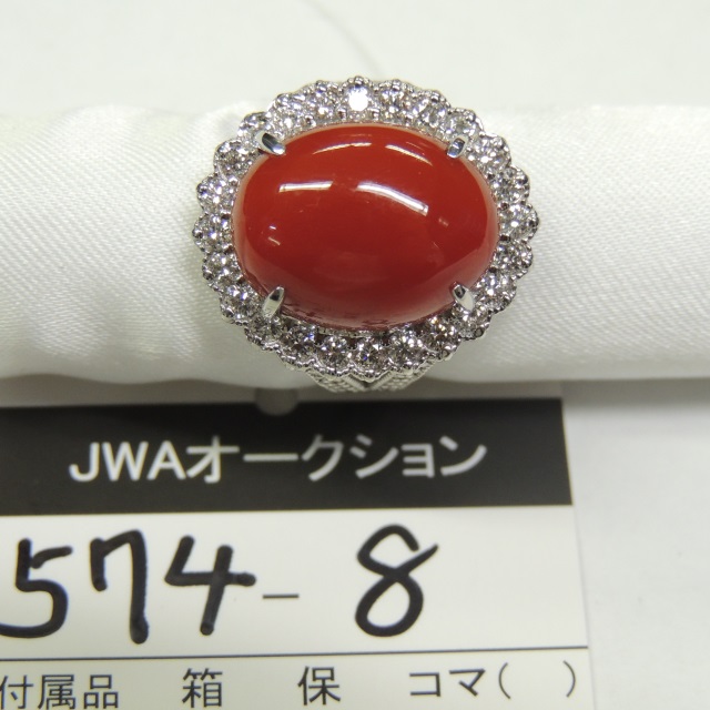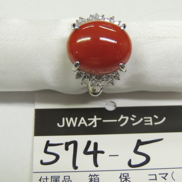 リング サンゴ ダイヤ Pt900 20.40g 石目:16.71 1.74