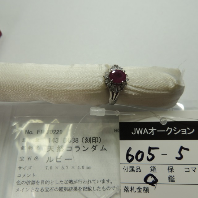 リング ルビー ダイヤ Pt850 5.30g 中ソ 石目:R1.48 D0.38