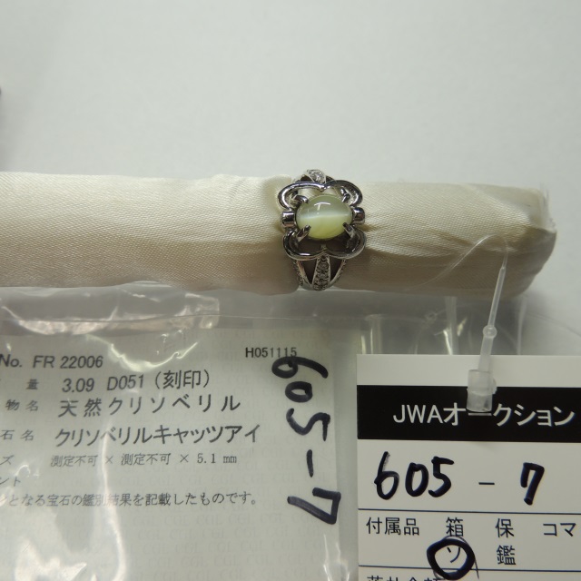 リング クリソベリルキャッツ ダイヤ Pt900 9.00g 中ソ 石目:C3.09 D0.51