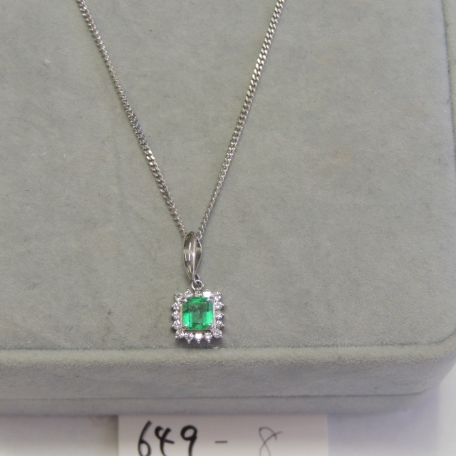 ペン・ネック エメラルドダイヤ Pt900/Pt850 5.60g GRJソ 石目:E0.61 D0.21