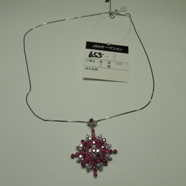 ペン・ネック ルビー ダイヤ Pt900/Pt850 12.40g 石目:3.92 1.75