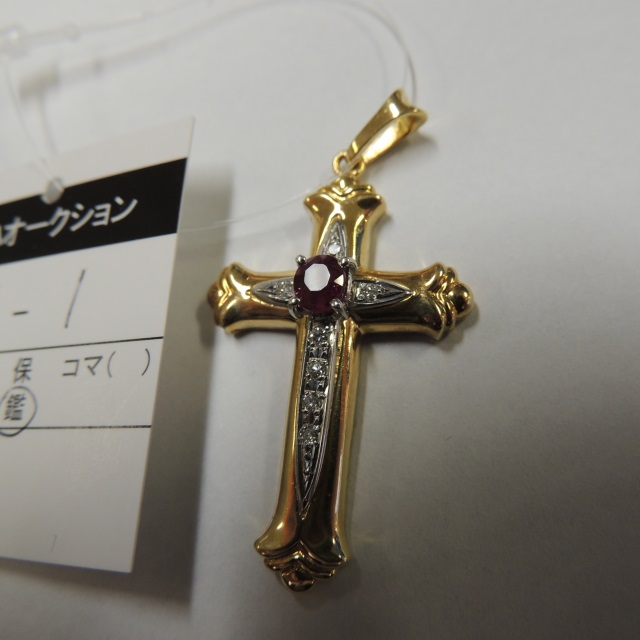 ペントップ ルビー ビルマ ダイヤ K18/Pt900 13.20g 鑑2 石目:1.05 0.14