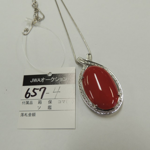 ペン・ネック サンゴ ダイヤ K18WG 21.00g 石目:D0.53