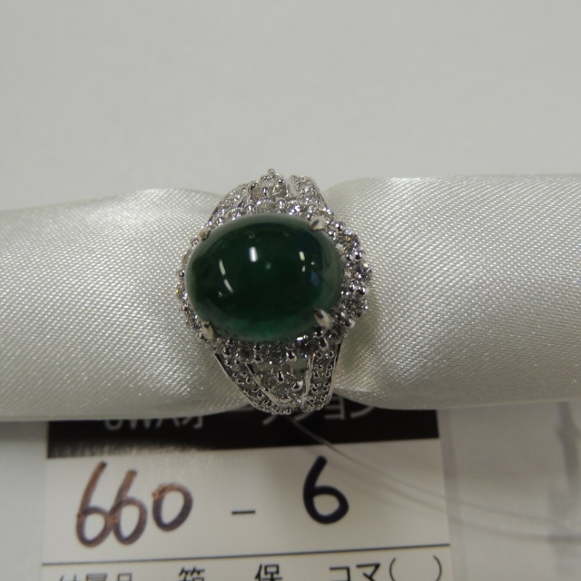 リング エメラルドカボション ダイヤ Pt900 9.00g 石目:6.92 1.016
