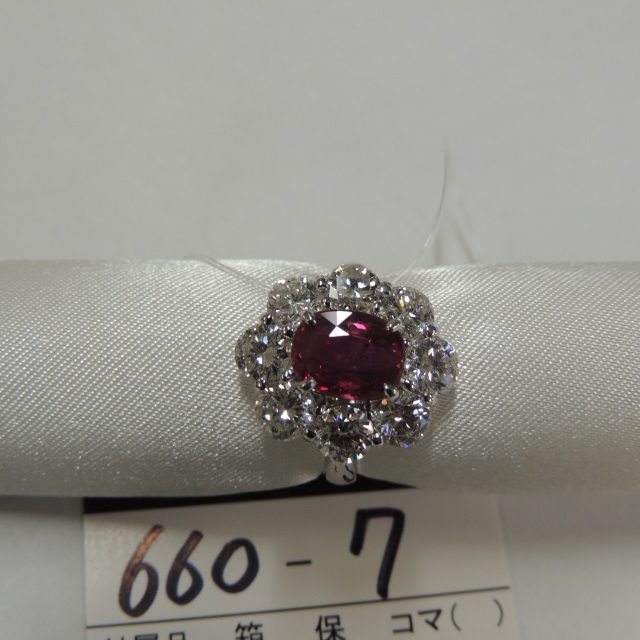 リング ルビー 非加熱 ピジョンブラッド ダイヤ Pt900 8.85g 鑑 石目:2.02 2.79