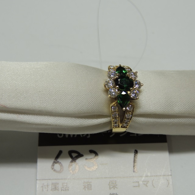リング グリーンガーネット ダイヤ K18YG 4.60g 石目:0.88 0.55